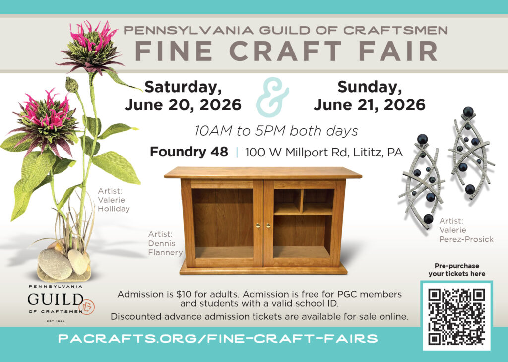 Come out to the 2026 Summer Fine Craft Fair at the beautiful, climate-controlled Foundry 48 Event Center in Lititz, PA, located in bucolic Lancaster County and situated just off PA Rt 501 N.