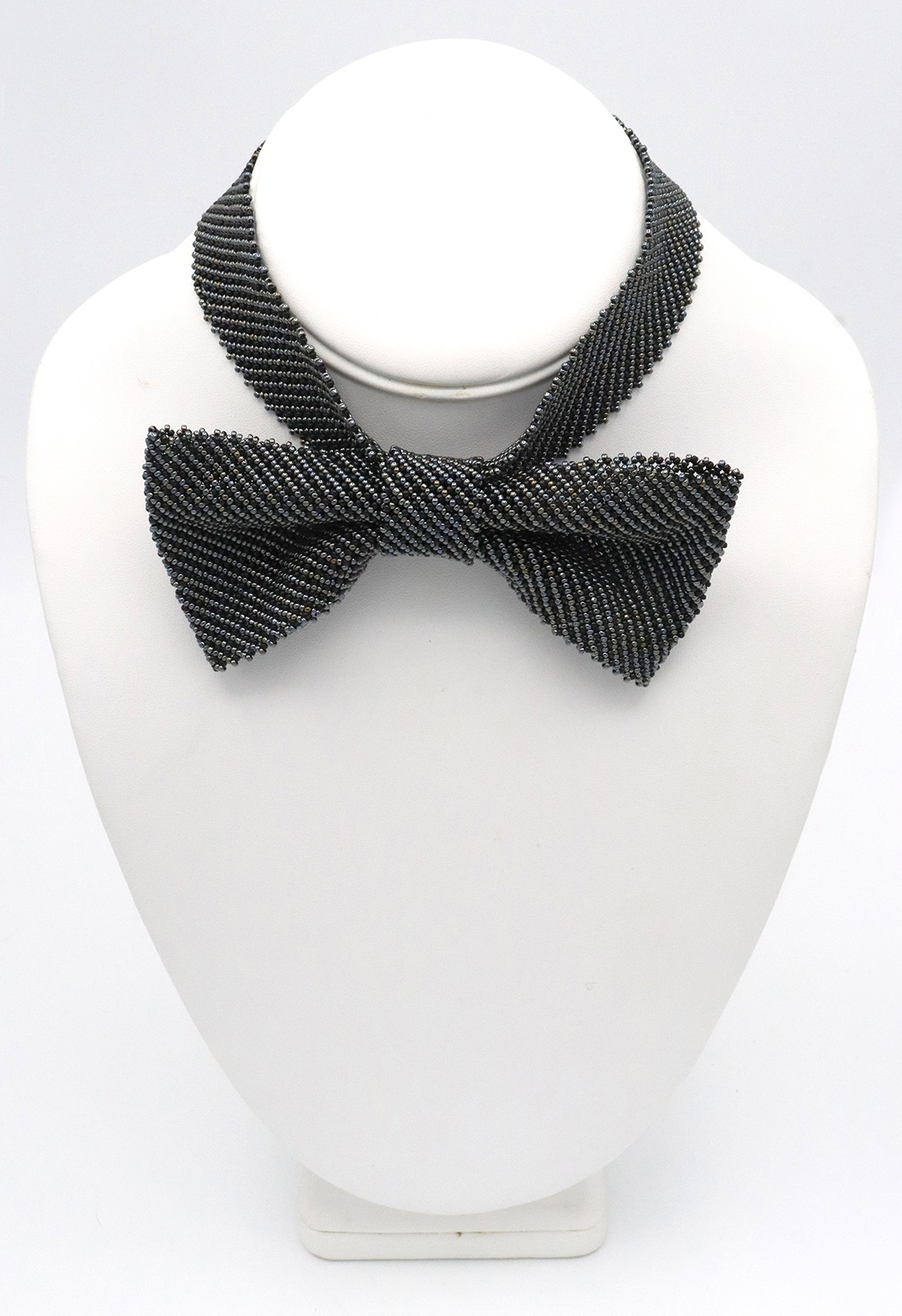 This fun beaded bowtie features classic pinstripes in black and gunmetal and is perfect for the guy (or girl) who isn’t shy about wearing a little extra bling. Super adjustable so that it can comfortably fit a wide range of neck sizes. (15.5″ to 20″)